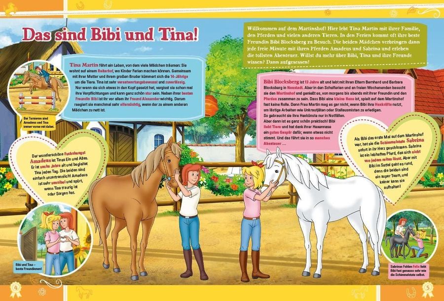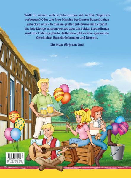 Wollt ihr wissen, welche Geheimnisse sich in Bibis Tagebuch verbergen? Oder wie Frau Martins berühmter Butterkuchen gebacken wird? In diesem großen Jubiläumsbuch erfahrt ihr jede Menge Wissenswertes über die beiden Freundinnen und ihre Lieblingspferde. Außerdem gibt es eine spannende Geschichte, Bastelanleitungen und Rezepte. Ein Muss für jeden Fan!