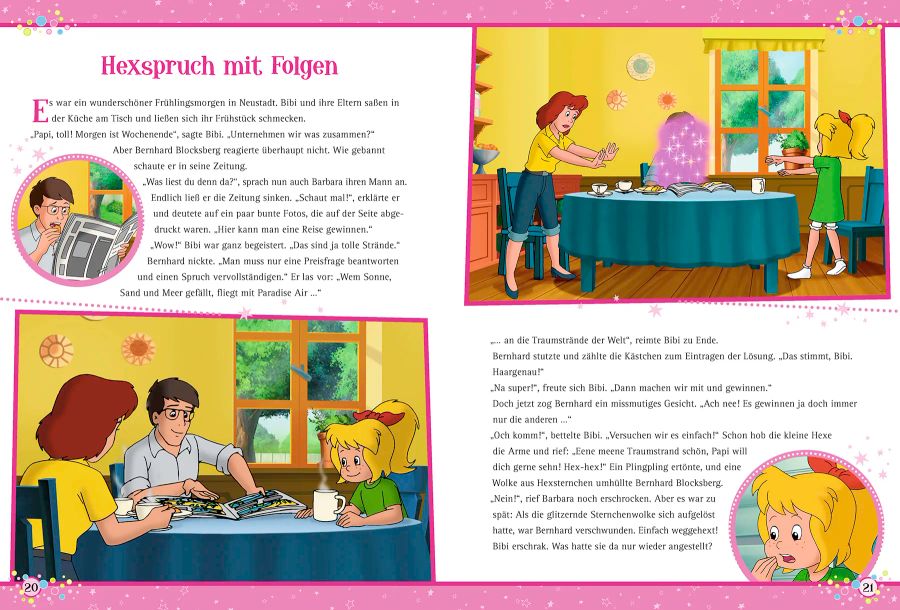 Im großen Jubiläumsbuch nimmt dich Bibi Blocksberg mit auf drei total verhexte Abenteuer. Ob sie nun Tricks auf ihrem Kartoffelbrei übt, versehentlich ihren Papa weghext oder die Althexen zu Gold erstarren: Die kleine Hexe meistert jede Herausforderung mit dem passenden Hexspruch und viel Herz. Drei spannende Bibi-Blocksberg-Geschichten in einem Band!