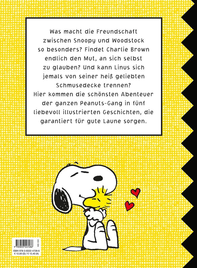 Was macht die Freundschaft zwischen Snoopy und Woodstock so besonders? Findet Charlie Brown endlich den Mut, an sich selbst zu glauben? Und kann Linus sich jemals von seiner heiß geliebten Schmusedecke trennen? Hier kommen die schönsten Abenteuer der ganzen Peanuts-Gang in fünf liebevoll illustrierten Geschichten, die garantiert für gute Laune sorgen.