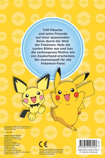 Triff Pikachu und seine Freunde auf einer spannenden Reise durch die Welt der Pokémon. Male die coolen Bilder aus und lass die verborgenen Motive wie von Zauberhand erscheinen. Ein Ausmalspaß für alle Pokémon-Fans!
