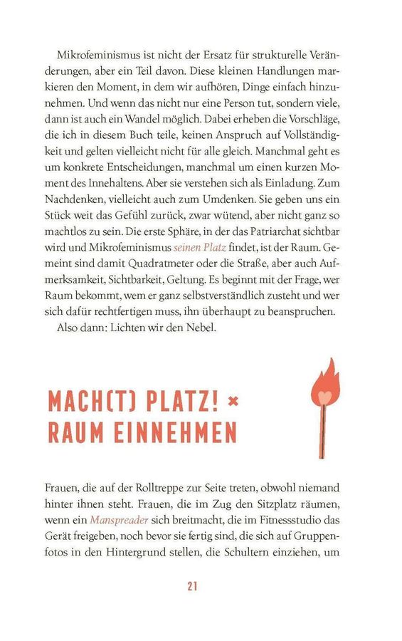 Fundiert und unterhaltsam zeigt Evelyn Höllrigl Tschaikner, was kleine Gesten, alltägliche Handlungen und leicht umsetzbare Strategien bewirken. Eine Form der Revolution im Kleinen, die zeigt: so nicht. Eine ermächtigende Anleitung, die hilft, dagegenzuhalten, wenn der Alltag im Patriarchat mal wieder kickt.