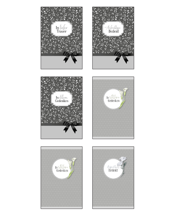 Trauerkarte grau - 50 Stück - 6 Motive