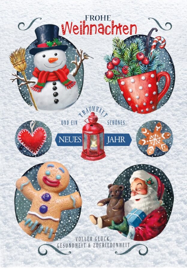 Ein 100er-Sortiment besteht aus 6 unterschiedlichen Doppelkarten inklusive Briefumschlägen im Format 11,5 × 17,5 cm. Die Motive können gegebenenfalls geringfügig