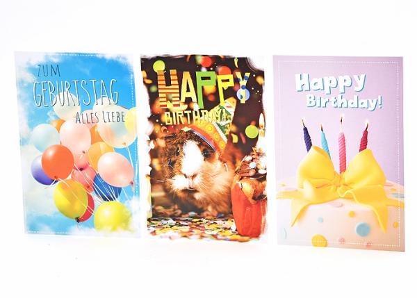 Geburtstagskarte - 100 Stück - 3 Motive
