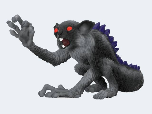 Der Schatten-Lemur von ELDRADOR® sieht gemein aus mit seinen roten Augen und den langen Fingern. Auf dem Rücken trägt dieser pechschwarze Lemur einen stacheligen Zackenka mit lilafarbenen Kristallen. Die sind bestimmt scharf. Besser Abstand halten!