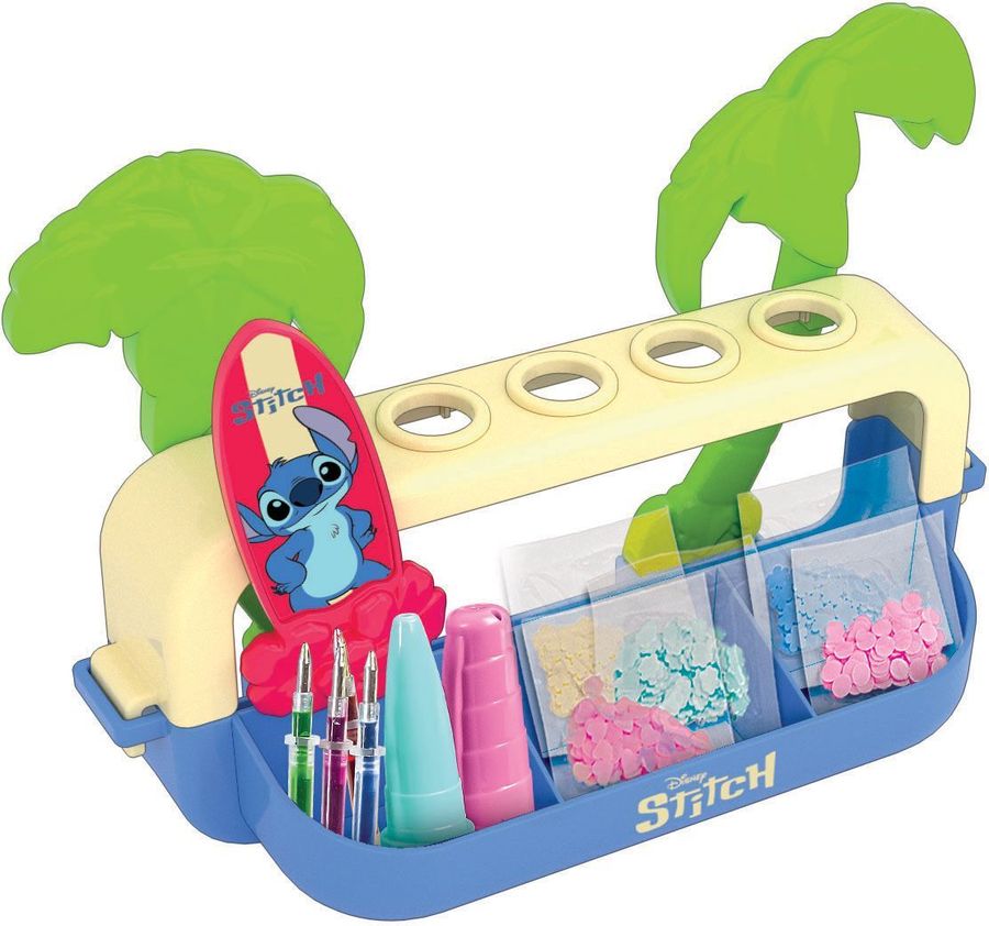 • Das neue Stift-Atelier m Stitch-Design! Der perfekte Weg, um fabelhafte Stitch-Stifte zu kreieren. • Ein praktischer Ständer und ein komplettes Instrumentarium, um Stifte mit vielen Verzierungen und niedlichen Stitch-Figuren zu personalisieren. • Das Set enthält 5 Stifte mit Figuren sowie farbige Tinte, schillernde Verzierungen und Aufkleber zur individuellen Gestaltung. • Ein Bastelset, das die Fantasie der Kinder beflügelt. Empfohlen für Kinder ab 6 Jahren. • Entwickelt und gestaltet in Italien.