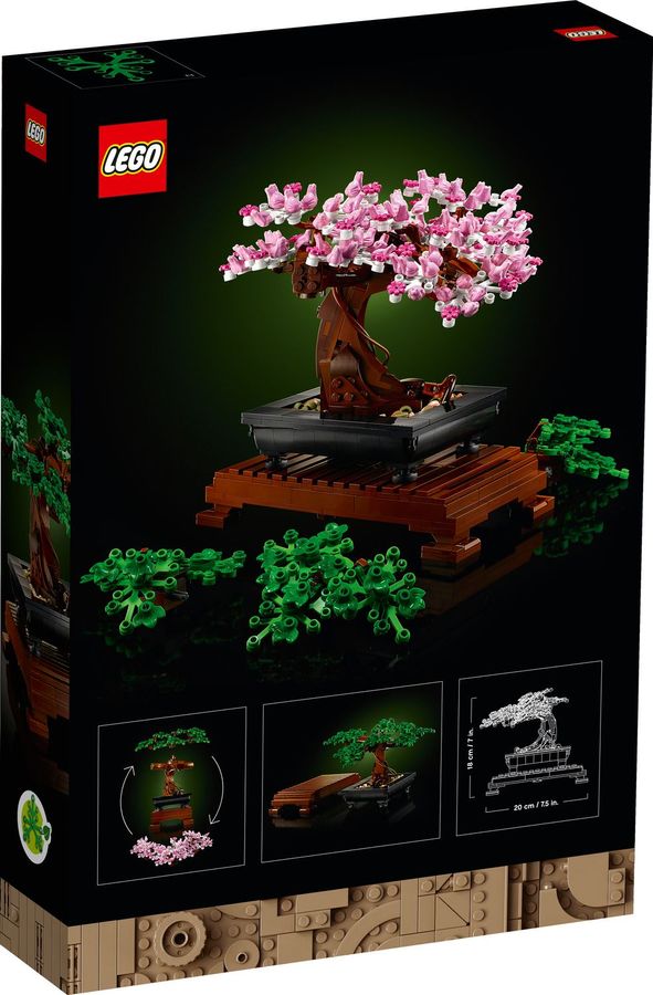 Die Bonsai-Kunst beflügelt die Fantasie von Baumliebhabern schon seit Jahrhunderten. Mit dem LEGO® Modellbausatz „Bonsai Baum“ kannst du diese traditionsreiche Kunst gebührend feiern. Genieße ein Gefühl der Ruhe, während du dem Bonsaibaum mit den grünen Blättern oder den rosafarbenen Kirschblüten seine Form gibst. Wenn dir dann der Sinn nach etwas anderem steht, lässt sich das farbige Blätterdach leicht austauschen. Sieh dir die rosafarbenen Blüten an. Erkennst du die winzigen Froschformen, ausdenen jede einzelne Blüte besteht? Wunderbares Bauprojekt Zum LEGO Bonsai Baum gehören auch eine rechteckige Schale und ein LEGO Sockel in Holzlatten-Optik, die ein hübsches Deko-Modell fürs Wohnzimmer oder Büro entstehen lassen. Dieses Set weckt mit seiner Schönheit die Fantasie – ob als Geburtstagsgeschenk für einen geliebten Mitmenschen oder als Belohnung für dich selbst. Als Teil der LEGO Botanik Kollektion für Erwachsene enthält das Set einige Blattelemente aus Biokunststoff, der aus nachhaltig angebautem Zuckerrohr gewonnen wird.