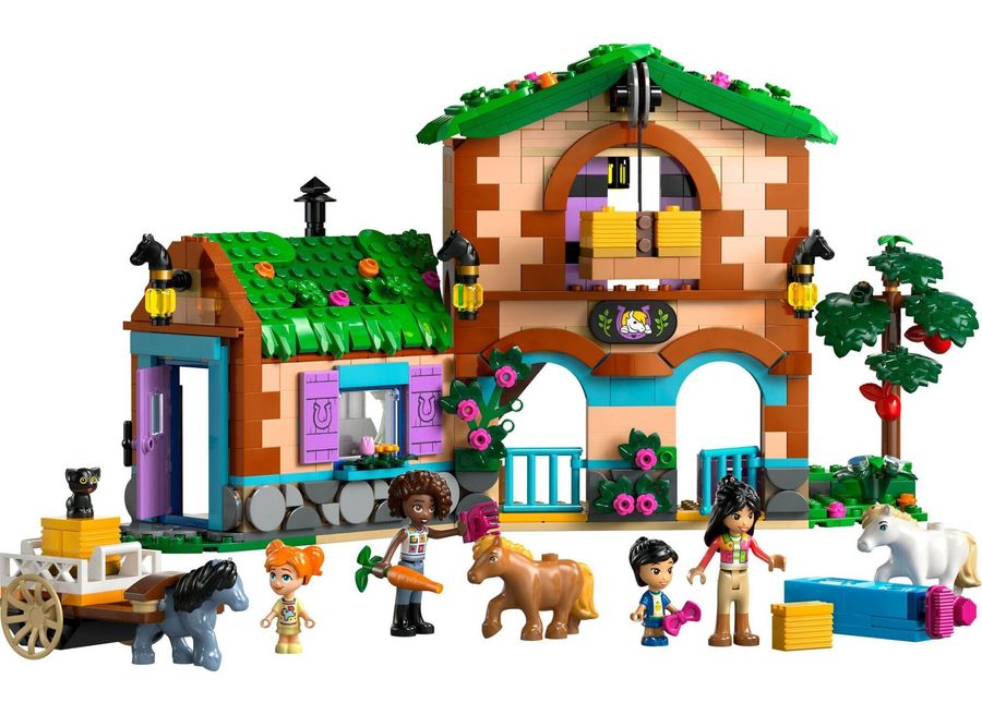 Junge Pferdefans werden dieses tierische Spielset lieben! Das LEGO Friends Ponyhof & Stall (42654) Set lässt Mädchen und Jungen ab 7 Jahren süße Freundschaftsgeschichten darstellen und mit den Tieren spielen. Das Spielzeug beinhaltet einen Ponyhof mit Ställen und Unterkunft, einen Wagen, 2 Minifiguren, 2 Mikro-Figuren, eine Katze, 3 Ponys und jede Menge Zubehör für ein fantasievolles Spielerlebnis. Kinder können die Minifiguren der Freundinnen Aliya, Liann, Victoria und Ella in unzählige Abenteuer schicken. Es macht riesigen Spaß, die Tierfiguren der Ponys zu bürsten und füttern. Mit dem funktionierenden Heulift kann man die Heuballen auf den Heuboden oder in den Wagen befördern. In dem Gebäude befinden sich ein gemütlicher Wohnbereich und ein Heuboden über dem Stall, damit die Freundinnen über ihren geliebten Ponys schlafen können. Ein Traum für alle Tierliebhaber! Entdecke im LEGO Friends Universum noch weitere separat erhältliche Bausets. Zu dem Set ist auch die LEGO Builder App für ein intuitives Bauerlebnis verfügbar.