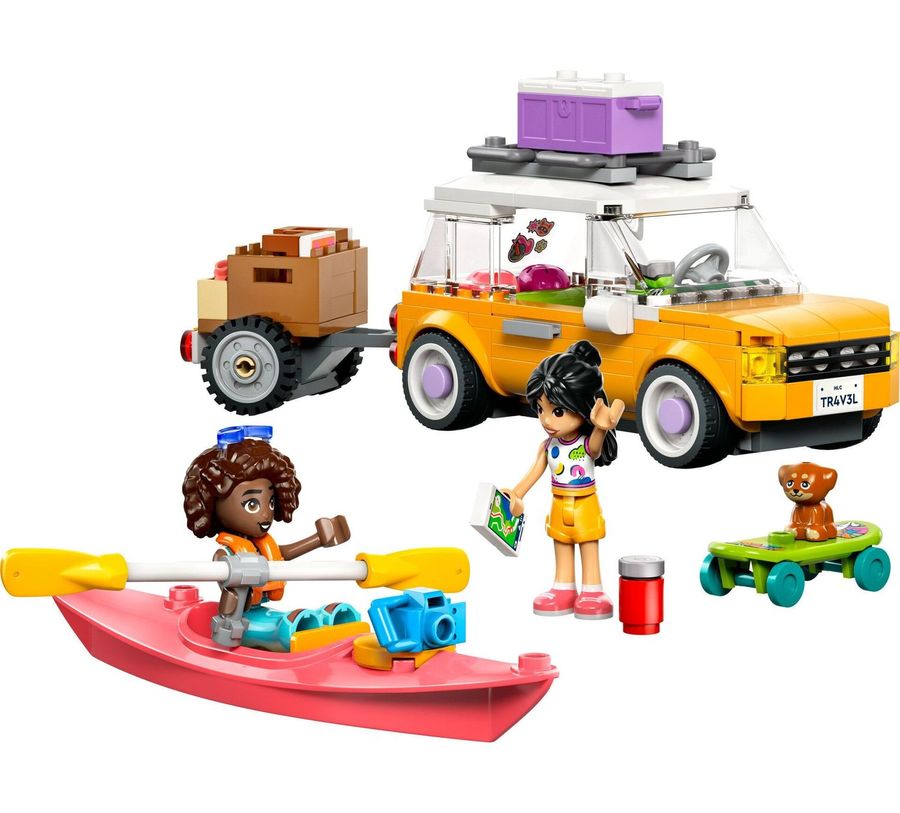 Der LEGO Friends Abenteuertrip mit Freunden (42659) ist ein faszinierendes Set, das Mädchen und Jungen ab 6 Jahren unzählige Abenteuer erleben lässt. Ein Spielzeug Auto mit Anhänger, 2 LEGO Friends Minifiguren, ein niedlicher Welpe und viele Accessoires bieten jede Menge Spielspaß. Kinder können kreativ werden und den Mini-Puppen Liann und Aliya helfen, das Auto und den abkoppelbaren Anhänger mit allem zu beladen, was sie für ihren Ausflug brauchen. Die Freundinnen sitzen vorne, und für den Welpen Aira gibt es hinten einen Sitz. Sie nehmen ein Kajak, 2 Helme, ein Skateboard, Inlineskates, 2 Stühle und eine Kühlbox mit einem Sandwich, einem Donut, einem Keks, Kirschen und einem Hundeleckerli mit. Die Kühlbox dient auch als Picknicktisch. Entdecke im LEGO Friends Universum noch weitere separat erhältliche Spielzeuge und Geschenke, die Kinder in ihrer sozial-emotionalen Entwicklung fördern. Zu dem Spielset ist auch die LEGO Builder App für ein intuitives Bauerlebnis verfügbar.