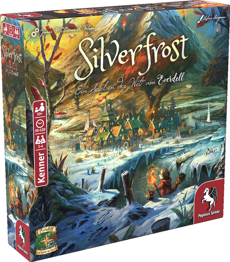 Hinter den schneebedeckten Spirecrest-Bergen, südlich des Everdell-Tals, liegt die raue Region Silverfrost. Die Wesen hier trotzen mutig der Kälte, um die stille Schönheit dieses Landes und die Wärme einer treuen Gemeinschaft zu genießen. Eure Aufgabe ist es, in dieser herausfordernden Landschaft neue Städte zu errichten. Beseitigt den immerzu fallenden Schnee, entfacht wärmende Feuer und erledigt wichtige Aufgaben für die Gilde der Silberwache, damit eure Städte wachsen und gedeihen. Nutzt Feuer, um Karten und Orte freizulegen, die von Schnee bedeckt werden! Entzündet Leuchtfeuer auf dem 3D-Berg, um legendäre Riesenwesen zu rufen! Erledigt Aufträge für die Gilde der Silberwache!