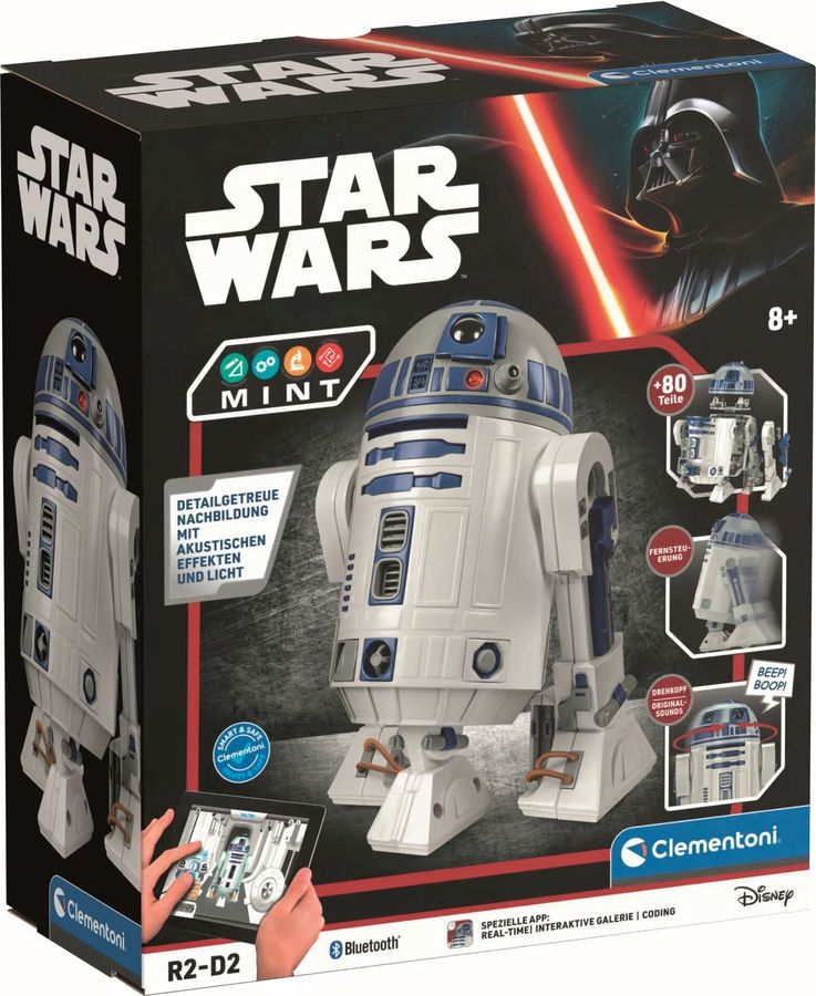 • Direkt aus der Star-Wars-Galaxie präsentiert Clementoni seinen brandneuen R2-D2 Roboter, der von einer der beliebtesten Figuren der Skywalker-Saga inspiriert wurde. • R2-D2 besteht aus mehr als 50 Teilen, die zusammengebaut werden können, verfügt über rote und blaue LED-Leuchten und gibt die Originalgeräusche aus der Saga wieder. • APP-Funktionen: Echtzeit für sofortige Befehlsreaktionen, Coding zum Erlernen der Programmiergrundlagen und eine interaktive Galerie, in der du sehen kannst, wie R2-D2 auf andere Figuren reagiert. • R2-D2 kann seinen Kopf um 180° drehen, genau wie in der Original-Saga. • Ein tolles Set, das Kindern die Grundsätze der Robotik mit einem unterhaltsamen, integrierten MINT-Ansatz vermittelt.