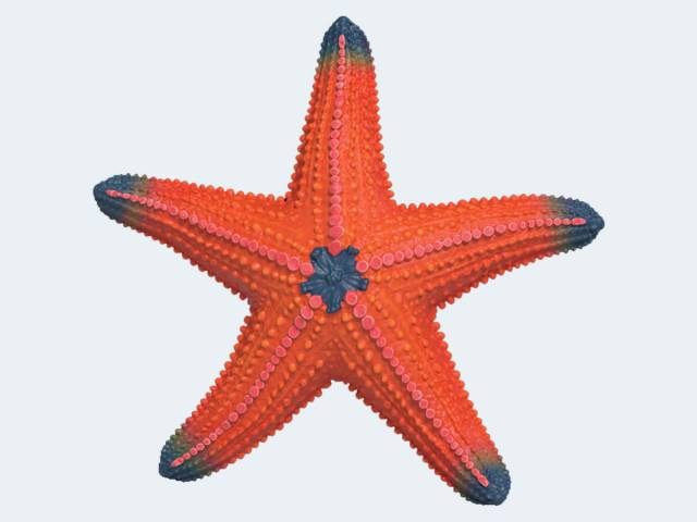 Mit seinen fünf Armen und der samtigen Oberfläche sieht der Seestern aus wie ein kleiner Schatz vom Meeresgrund. Seine Grundfarbe ist Gelb, aber er kann sie je nach Umgebung und Temperatur verändern – mal rötlich, mal bläulich, mal sandfarben. So ist er im Korallenriff gut getarnt und vor Feinden sicher.