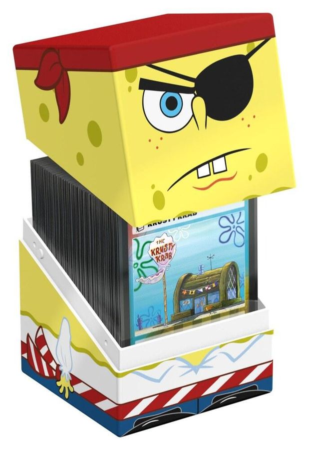 Sammelbare Box zur Aufbewahrung von TCG-Decks, Tabletop-Zubehör und/oder Sammlerstücken. Der Pirate SpongeBob Squaroe aus der SpongeBob SquarePants?-Edition bietet als Deck-Box benutzt Platz für bis zu 100 Spielkarten in doppelter Schutzhülle. Squaroes werden aus 78% erneuerbaren Rohstoffen hergestellt und passen perfekt in das separat erhältliche Collectors Case.
