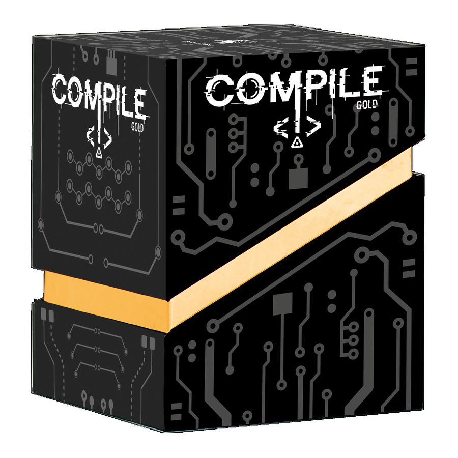 Bei dem Kartenspiel-Duell Compile (Gold Edition) treten zwei Spielende als künstliche Intelligenzen gegeneinander an. Mithilfe der Effekte ihrer Befehlskarten verbinden sie drei Protokolle zu einem cleveren Algorithmus und versuchen, sie vor der anderen Person zu kompilieren. Vor Spielbeginn wählen die Spielenden je drei von zwölf verfügbaren Protokollen aus und legen sie so in die Mitte der Spielfläche, dass sich jeweils zwei Protokolle gegenüberliegen. Die Spielenden sind abwechselnd am Zug und können entweder Handkarten ausspielen oder Karten von ihrem Protokoll-Nachziehstapel ziehen. Durch geschicktes Platzieren lassen sich wirkungsvolle Effektsynergien erzeugen, die eigene Vorteile stärken und gegnerische Strategien behindern. Sobald in einem Protokoll ausreichend Punkte gesammelt wurden, wird es kompiliert. Wer zuerst alle drei Protokolle kompiliert, entscheidet die Partie für sich. Compile (Gold Edition) kann eigenständig gespielt oder mit dem Grundspiel Compile (Purple Edition) oder einer der Erweiterungen (Gleichgültigkeit * Hass * Liebe bzw. Assimilation * Einheit * Vielfalt) kombiniert werden.