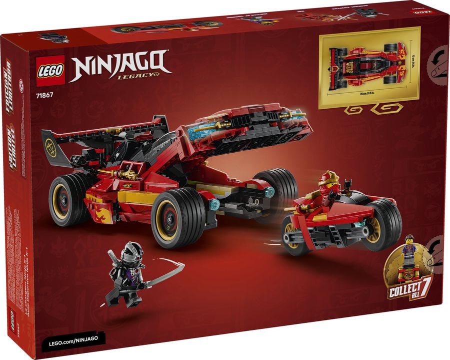 Feiere das 15-jährige Jubiläum der TV-Serie LEGO® NINJAGO® mit diesem X-1 Ninja Supercar (71867). Das unfassbare 2-in-1-Modell ist eine Neuauflage des ursprünglichen X-1 Ninja Supercar (70727). Dieser Spielzeugflitzer bietet Fans ab 14 Jahren unzählige Spielmöglichkeiten und lässt sie ein dynamisches Modell ausstellen. Zu diesem Bauset für Teenager gehören auch 3 NINJAGO Minifiguren: Kai, der böse General Cryptor und zum allerersten Mal auch die Elementarmeisterin des Schattens auf einem Ständer mit Jubiläumsmedaille. Jede Minifigur schwingt mindestens 1 Schwert, und Kai hat sogar 2 Schwerter, die am Auto und am Motorrad befestigt werden können. Teenager können mit dem Flitzer die Actionszenen aus der TV-Serie nachspielen und das Modell dann in ihrem Zimmer ausstellen. Entdecke weitere coole Geschenkideen für Ninja-Fans in den LEGO NINJAGO Sets mit Mechs, Drachen und Tempeln. Und die LEGO Builder App mit verständlichen digitalen Bauanleitungen lässt Kinder selbstbewusst bauen, 3D-Modelle vergrößern und drehen und anschauen, wie weit sie schon sind.