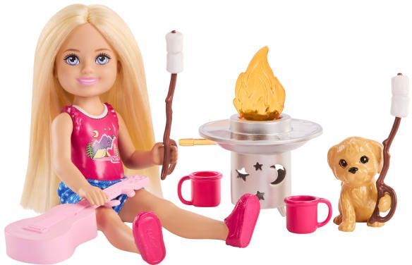 Die Chelsea-Puppe und ihr Hundewelpe lieben die Natur – dieses Spielset aus der Reihe „Barbie Family and Friends zelebriert ihren Abenteuergeist mit Teilen zum Thema Camping. Das Set „Chelsea Outdoor Adventures regt mit einer kleinen Puppe, einer Hundefigur und beliebten Campingutensilien wie einer Feuerstelle und Marshmallow-Röstern zum Geschichtenerzählen an. Chelsea und ihr Hundewelpe können mit einer Gitarre „jammen, heißen Kakao trinken und die Abenteuer genießen, die sich junge Fantasien ausdenken!