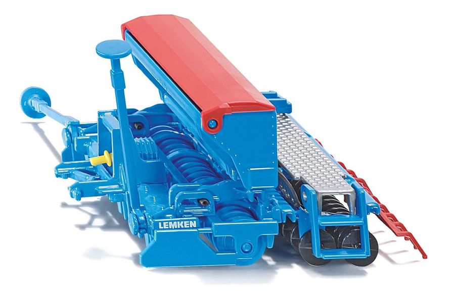 Lemken Saat- Drill-Kombination – Präzise, robust, unverzichtbar - Die Lemken Saat-Drill-Kombination bringt modernste Agrartechnik im Kleinformat ins Kinderzimmer und überzeugt in markantem Blau mit rotem Saatgutbehälter durch eine detailreiche Nachbildung, die Funktionalität und Realitätsnähe perfekt verbindet. Die zweistufige Mechanik zum Absenken der Sämaschine wurde vorbildgetreu ausgeführt, Walzen und Spuranreißer sind beweglich und machen den landwirtschaftlichen Einsatz besonders anschaulich. Mit der breiten Arbeitsfläche sorgt sie für eine gleichmäßige Aussaat, während fein ausgearbeitete Walzen und Säschare zeigen, wie Technik und Effizienz in der Landwirtschaft harmonieren und den Einsatz besonders realistisch wirken lassen. Die robuste Bauweise garantiert langen Spielspaß und macht die Maschine sowohl im Kinderzimmer als auch in der Sammlung zum unverzichtbaren Highlight. Ob im Einsatz mit einem starken Traktor oder als authentisches Modell in der Vitrine – die Lemken Saat-Drill-Kombination beweist, wie Präzision, Leistung und Qualität Hand in Hand gehen.